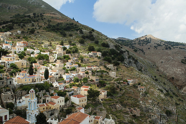 Symi es una isla griega del archipiélago del Dodecaneso, una de tantas paradisíacas que éste país tiene por ofrecer a visitar. Se encuentra muy cerca de la costa de Turquía, y a pocos kilómetros de Rodas. Ésta isla montañosa, apenas está poblada. Y sus habitantes se encuentran especialmente en Symi, el sitio al que pertenecen las fotos, un pueblo de pescadores al que es fácil de entender por qué llegan turistas en verano: tranquilidad, playas escondidas, y paisajes agrestes. Pero para destacar, nos quedamos sobre todo con las vistas de éste pueblo: