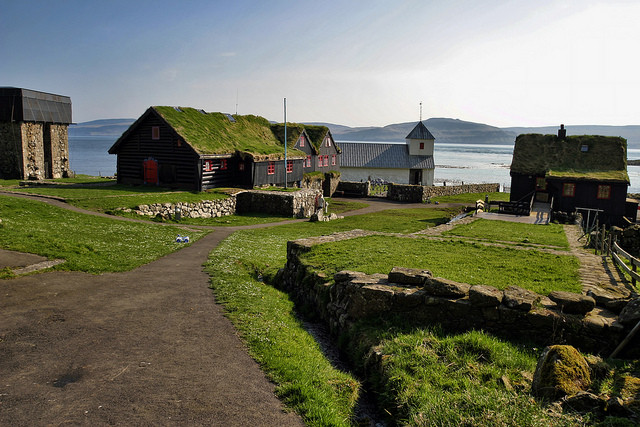 Los techos cubiertos con una capa de hierba son característicos de varios países nórdicos europeos, un tipo de construcción que también se puede ver en Islandia, y que tiene una enorme tradición en las islas Feroe. Pero éste pueblo tiene un encanto aún más particular. Es un rincón cargado de historia y bien conservado. Se llama Kirkjubøur, y se encuentra en la costa oeste de la isla Streymoy. Apenas está poblado actualmente, pero fue un importante centro religioso en la Edad Media (por ser sede episcopal cristiana desde el año 999, aunque su historia se remonta a los tiempos vikingos).